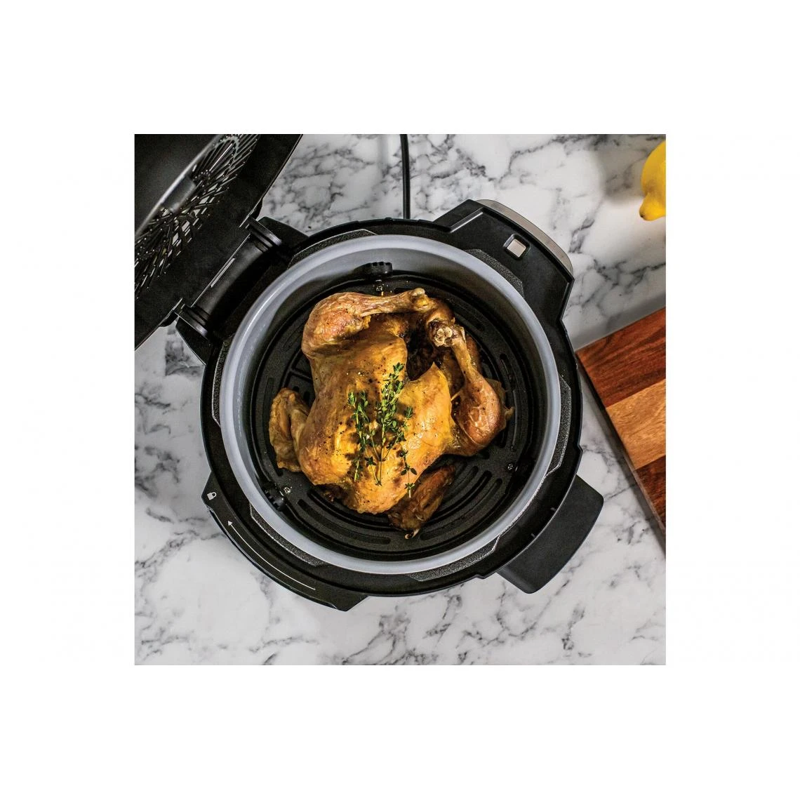 CaractĂ©ristiques complĂ©mentaires : Technologie TenderCrisp pour faire croustiller vos plats ; 1 appareil, 6 façons de cuisiner ; Jusqu’Ă 70% plus rapide que les mĂ©thode de cuisson traditionnelles ; Contenance: jusqu’Ă 2 portions/ poulet de 1,5kg ou 900g de frites ; RĂ©glages de tempĂ©rature: 40°C Ă 265°C ; Accessoires inclus: 1 cuve de cuisson amovible 4,7L, 1 couvercle de cuisson sous pression amovible, 1 support rĂ©versible, 1 support Crousti ; Accessoires lavables au lave-vaisselle ; RevĂŞtement en cĂ©ramique antiadhĂ©sif facile Ă nettoyer.