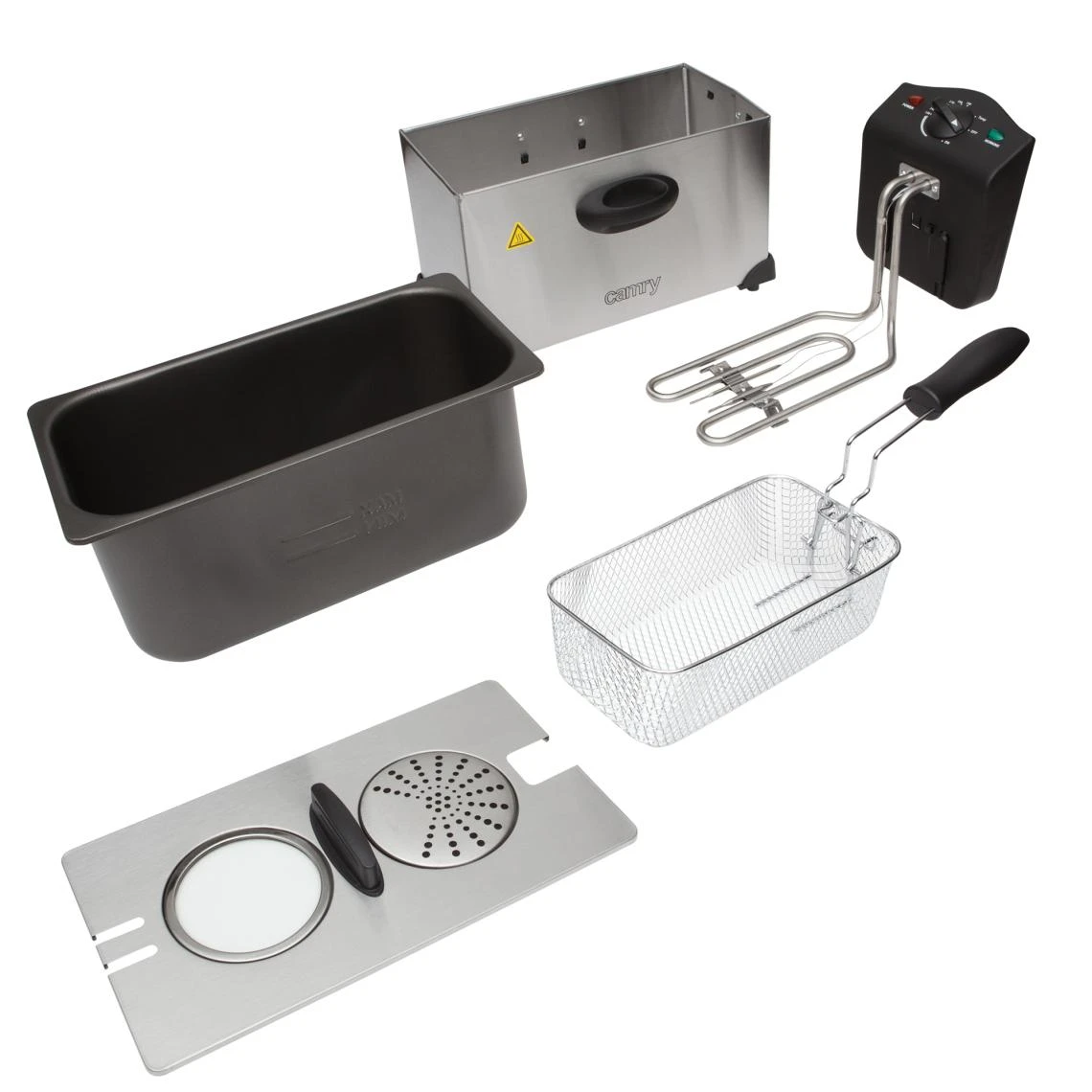 Points forts Camry Friteuse électrique compacte 3 litres cuve antiadhésive lavable, 2000, Argent, Camry, CR 4909