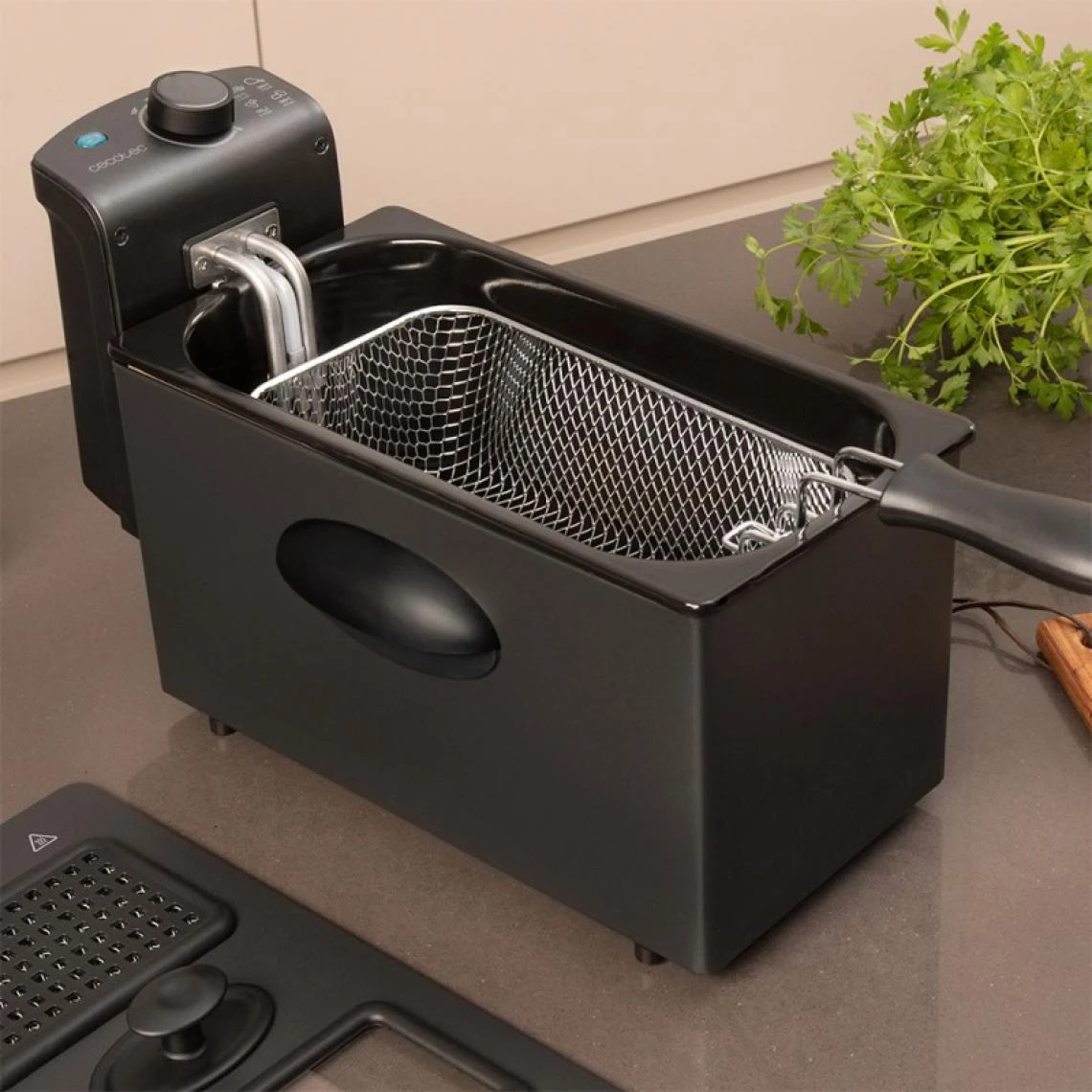Points forts Cecotec Cecotec, Friteuse électrique, CleanFry 3000 Black, 2180 W, 3 L, Acier Inoxydable, Couvercle avec fenêtre, filtre anti-odeurs
