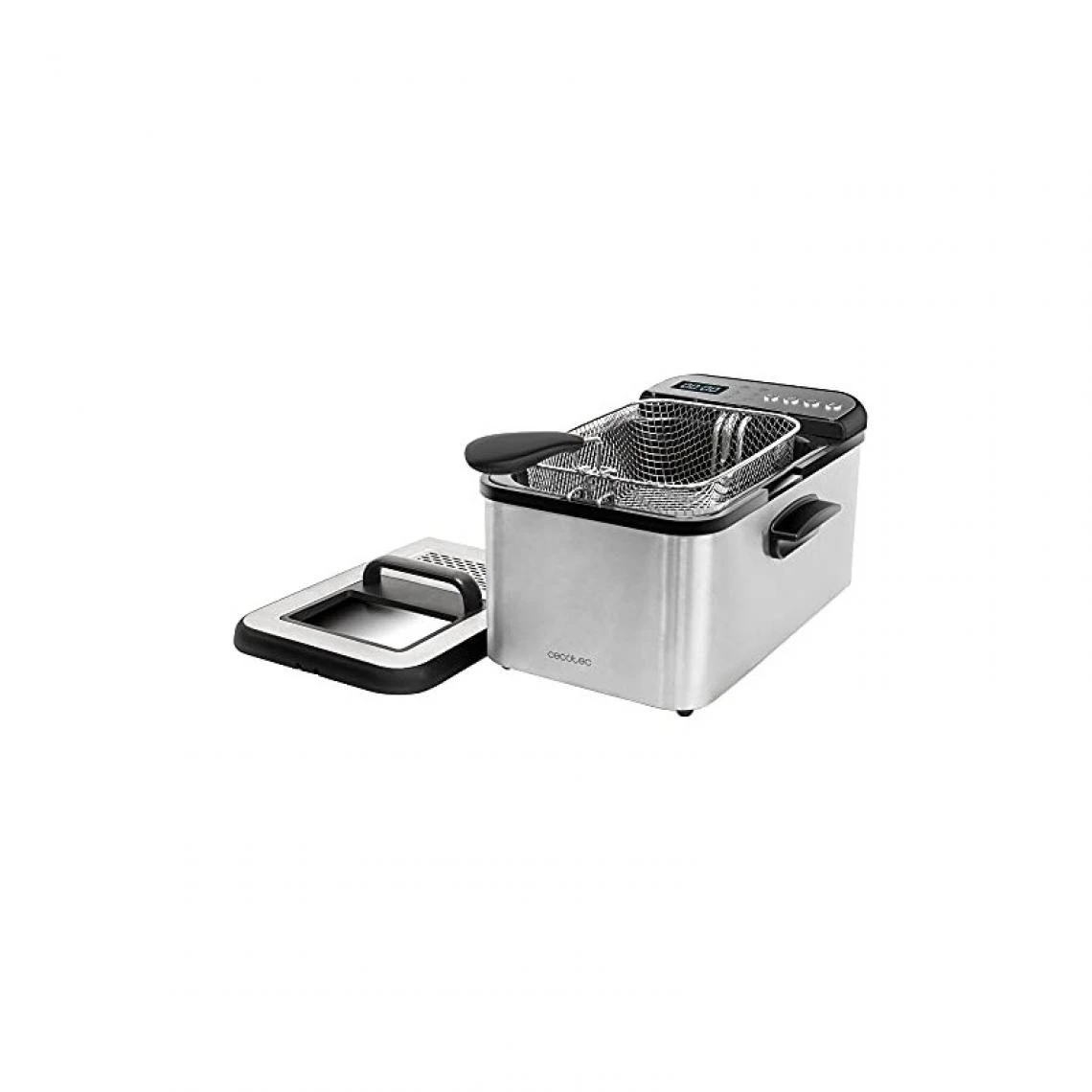 Cleanfry Luxury 3000 Friteuse numérique au design élégant en acier inoxydable, 3,2 L de capacité et 5 programmes préétablis. Elle dispose de 2400 W de puissance et d’un filtre OilClean qui maintient l’huile propre pendant longtemps, un couvercle en acier inoxydable avec fenêtre pour contrôler la friture et filtre anti-odeurs. Friteuse haut de gamme avec capacité pour 3,2 litres d’huile, parfaite pour cuisiner pour toute la famille une grande variété de plats frits comme des pommes de terre frites, du poulet ou du poisson. Friteuse numérique avec écran qui affiche le temps et la température de cuisson des aliments. Cette friteuse dispose de 5 programmes prédéterminés pour que vous cuisinez facilement plusieurs types d’aliments : des frites congelées, des frites nature, des nuggets, des ailes de poulet et des croquettes. Inclus : filtre OilCleaner qui maintient l’huile propre après chaque utilisation. Possède 2400 W de puissance maximale pour frire rapidement et efficacement afin d’obtenir une friture parfaite en peu de temps. La cuve, le panier de friture et le filtre OilCleaner conviennent pour un nettoyage au lave-vaisselle. La cuve, ainsi que le corps de la friteuse, sont en acier inoxydable. Couvercle en acier inoxydable avec filtre anti-odeurs pour éviter les gênes dans la cuisine. Fenêtre sur le couvercle pour contrôler à la perfection le processus de friture. Température ajustable jusqu’à 190 ºC pour obtenir les meilleurs résultats dans toutes vos élaborations. Totalement démontable pour faciliter son nettoyage et entretien. Cuve avec revêtement antiadhésif pour garantir une cuisson uniforme et éviter que les aliments collent. Cela rend son nettoyage plus facile. Le panier de friture possède une poignée toucher froid pour contrôler le processus de friture sans risque de brûlures. La friteuse vous prévient lorsque la température souhaitée a été atteinte à travers un avertissement acoustique Elle dispose d’un système de protection contre la surchauffe et d’un espace de stockage du câble d’alimentation Double capteur/sonde pour une utilisation plus sûre Élément chauffant submergé.