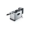 Cleanfry Luxury 4000 Dark Friteuse numérique au design élégant en acier inoxydable et teintée noir avec 4,2 L de capacité et 5 programmes préétablis. Elle dispose de 3270 W de puissance et d’un filtre OilCleaner qui maintient l’huile propre pendant longtemps, un couvercle en acier inoxydable avec fenêtre pour contrôler la friture et filtre anti-odeurs. Friteuse haut de gamme avec une capacité de 4,2 L d’huile, parfaite pour cuisiner pour toute la famille une grande variété de plats frits comme des pommes de terre frites, du poulet ou du poisson. Friteuse numérique avec écran qui affiche le temps et la température de cuisson des aliments. Cette friteuse dispose de 5 programmes prédéterminés pour que vous cuisinez facilement plusieurs types d’aliments : des frites congelées, des frites nature, des nuggets, des ailes de poulet et des croquettes. Inclus : filtre OilCleaner qui maintient l’huile propre après chaque utilisation. Possède 3270 W de puissance maximale pour frire rapidement et efficacement afin d’obtenir une friture parfaite en peu de temps. La cuve, le panier de friture et le filtre OilCleaner conviennent pour un nettoyage au lave-vaisselle. Le couvercle, ainsi que l’unité principale de la friteuse, sont en acier inoxydable et teintés noir. Couvercle en acier inoxydable avec filtre anti-odeurs pour éviter les gênes dans la cuisine. Fenêtre sur le couvercle pour contrôler à la perfection le processus de friture. Température ajustable jusqu’à 190 ºC pour obtenir les meilleurs résultats dans toutes vos élaborations. Totalement démontable pour faciliter son nettoyage et entretien. Cuve avec revêtement antiadhésif pour garantir une cuisson uniforme et éviter que les aliments collent. Cela rend son nettoyage plus facile. Le panier de friture possède une poignée toucher froid pour contrôler le processus de friture sans risque de brûlures. La friteuse vous prévient lorsque la température souhaitée a été atteinte à travers un avertissement acoustique Elle dispose d’un système de protection contre la surchauffe et d’un espace de stockage du câble d’alimentation Double capteur/sonde pour une utilisation plus sûre Élément chauffant submergé.