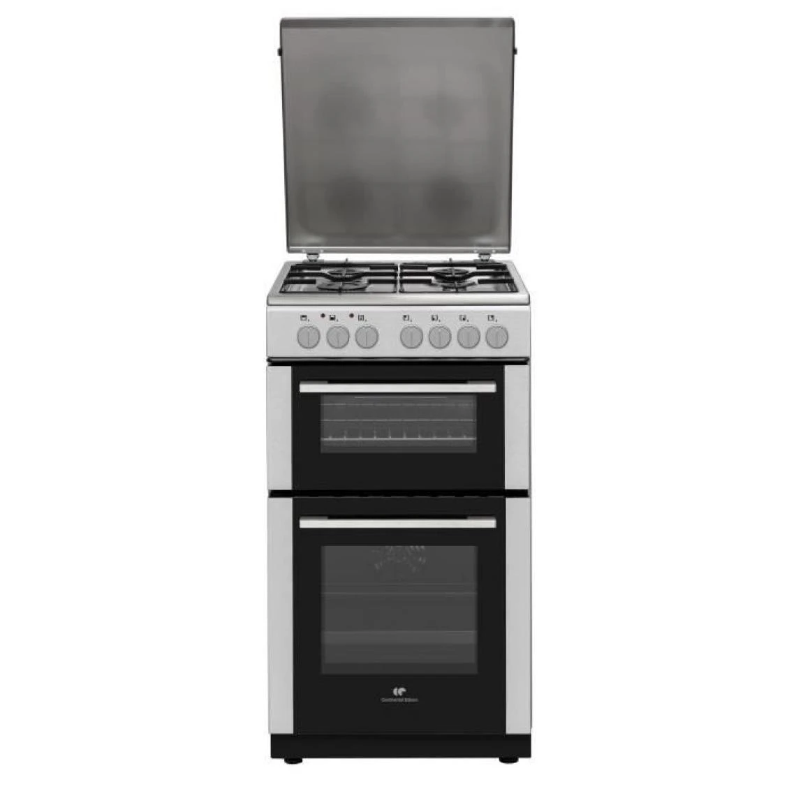 Cuisinière gaz CONTINENTAL EDISON CEDF5060IX3 – 4 feux – inox – Dimensions : L50 xP60 x H90 cm