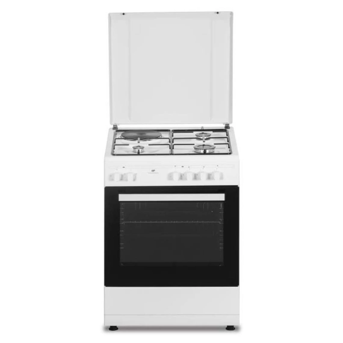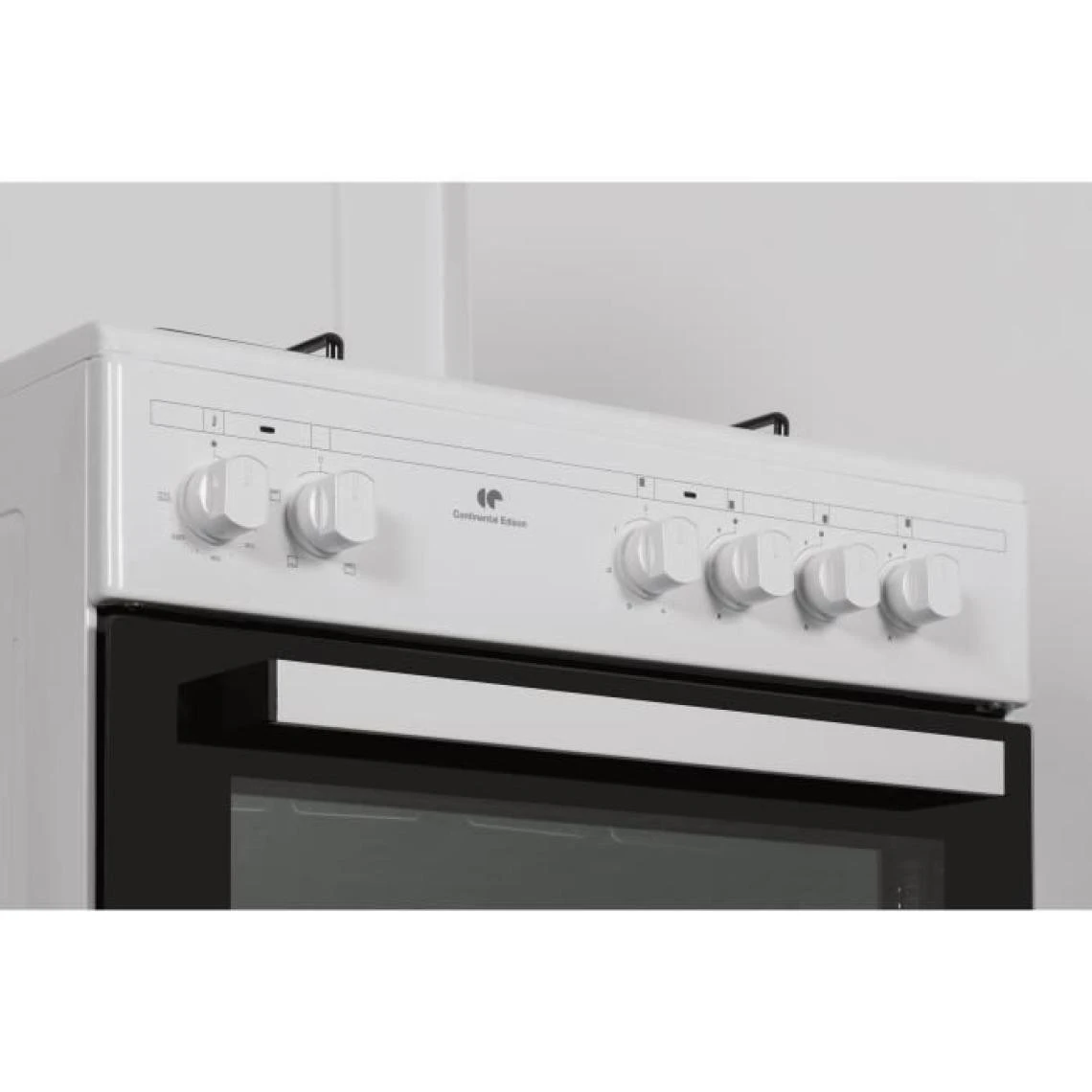 Cuisiniere mixte CONTINENTAL EDISON CECM60FCW – 3 feux gaz + 1 électrique – L59,8 x P61 xH83 cm – Blanc.
