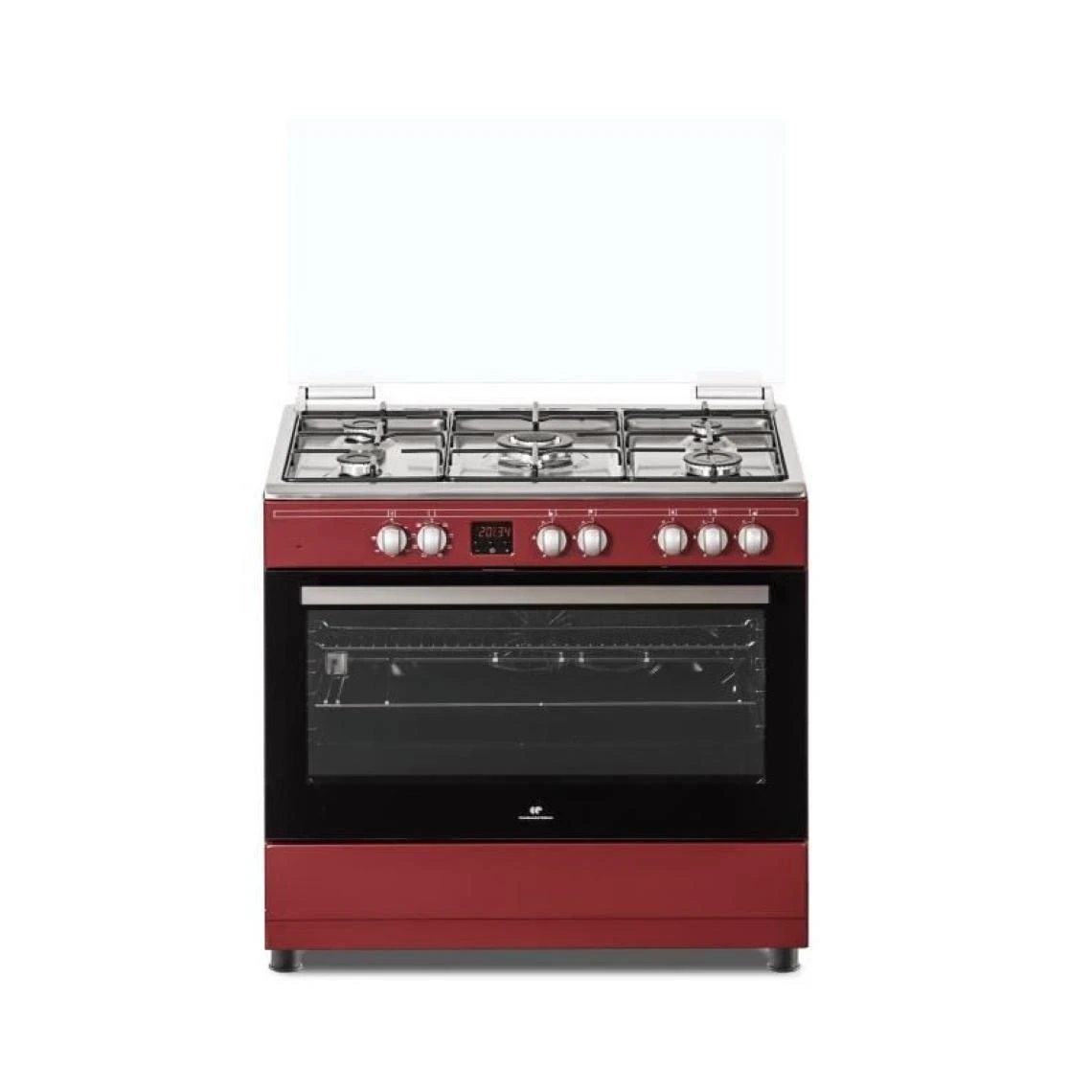 Cuisiniere piano gaz CONTINENTAL EDISON CECP9060BODX – 5 feux – L89,9 x P60,1 xH85cm – Couleur Rouge Bordeaux