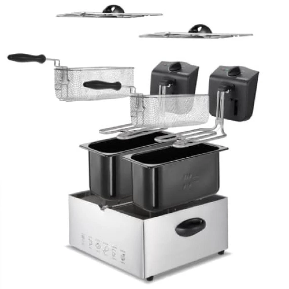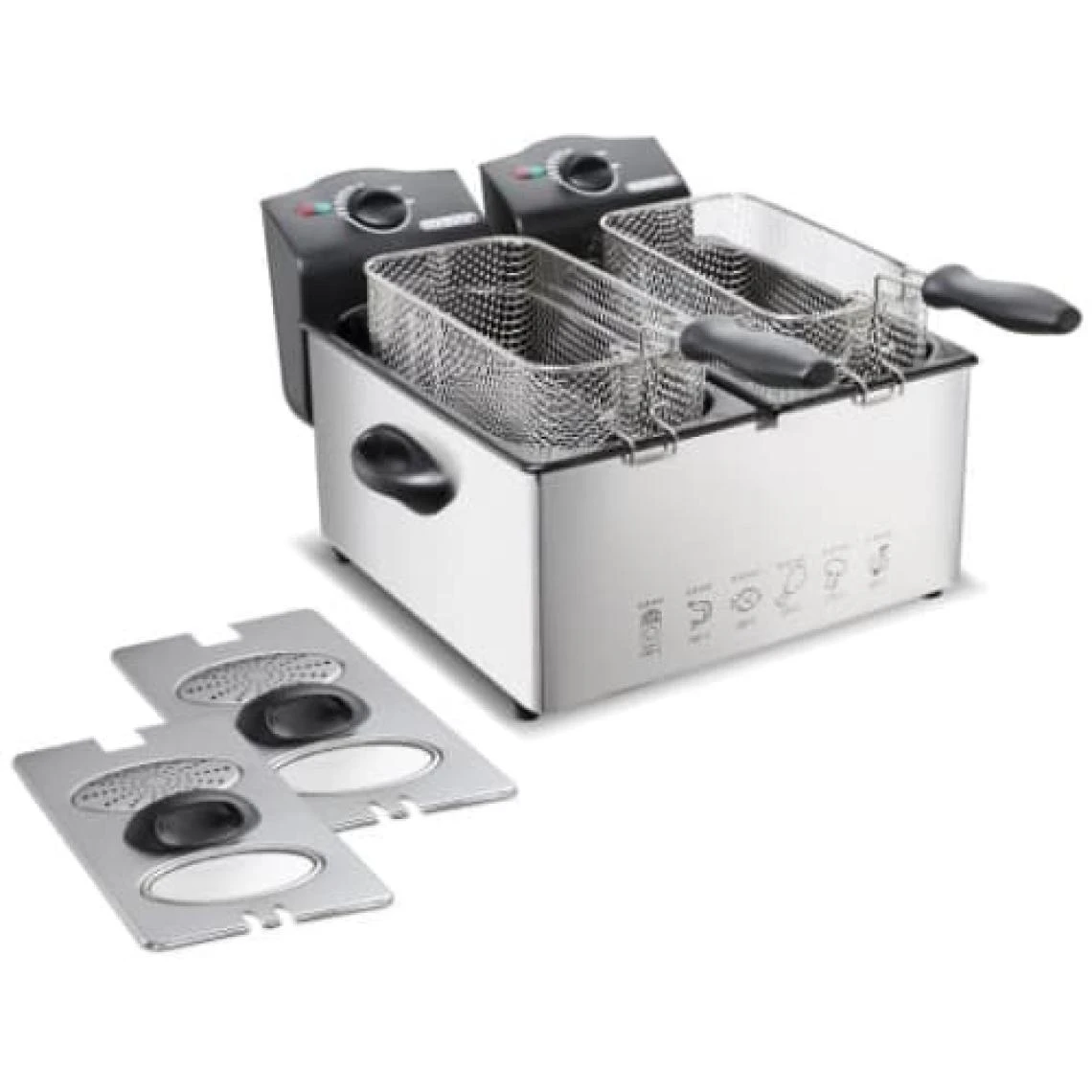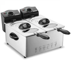 Points forts Deuba 101454 Friteuse 2000W 6L 2 Panier Adjustable Thermostat Témoins lumineux Revêtement Anti-Adhésif Métal Gris