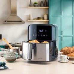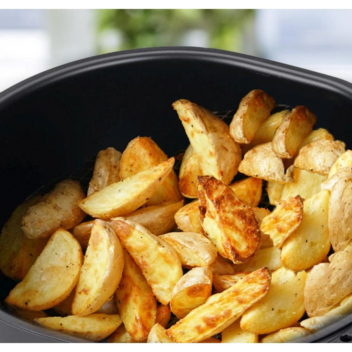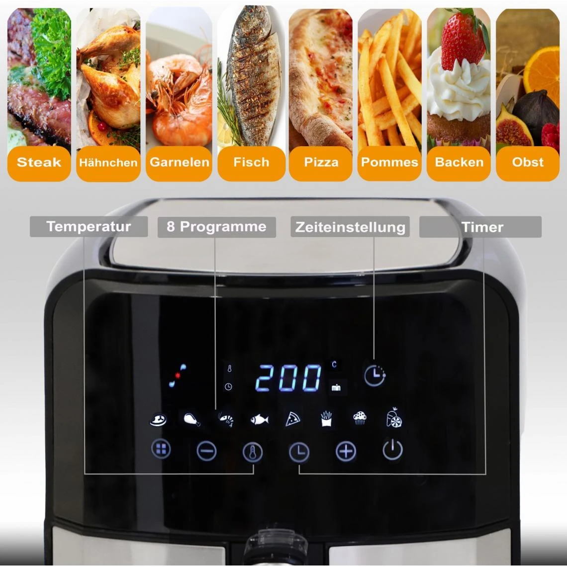 La friture en toute simplicitĂ© : frites, nuggets de poulet et bâtonnets de poisson pour tous ! DĂ©sormais, personne n’a Ă attendre longtemps la deuxième portion. La puissante friteuse Ă air chaud avec commande numĂ©rique et 8 programmes travaille incroyablement vite avec les aliments frais et surgelĂ©s, sans ajouter de graisse supplĂ©mentaire. La nourriture est impressionnante : dorĂ©e Ă point. Le fonctionnement est simple et sĂ»r, grâce Ă des Ă©lĂ©ments chauffants en acier inoxydable de haute qualitĂ©, un dĂ©lai de dĂ©marrage (0-24 heures), une minuterie de 60 minutes avec arrĂŞt automatique et un boĂ®tier en plastique thermo-isolĂ©. Le panier Ă friture antiadhĂ©sif est facile Ă nettoyer et va au lave-vaisselle.