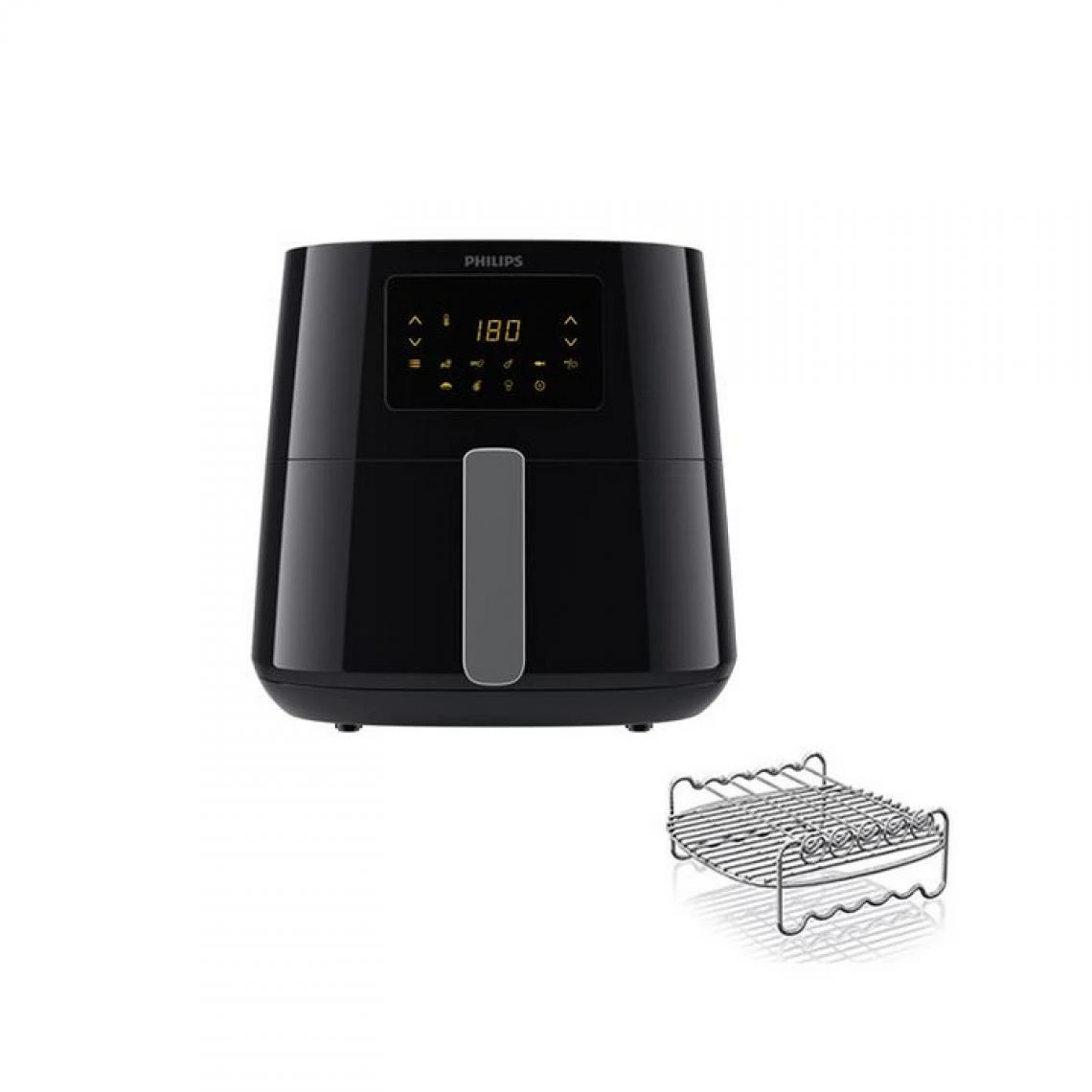 friteuse 6.2l 2000w noir – hd9270/96 – Friteuse Airfryer Essential Philips HD9270.96. Les frites les plus savoureuses avec jusqu’Ă 90% de matières grasses en moins ! (comparĂ© Ă des frites fraĂ®ches cuites dans une friteuse Philips standard). Airfryer : une technologie qui se perfectionne depuis plus de 10 ans. Technologie brevetĂ©e Rapid Air permettant d’utiliser de l’air chaud pour frire, cuire, griller, rĂ´tir et rĂ©chauffer tous vos plats et snacks prĂ©fĂ©rĂ©s. Des recettes personnalisĂ©es selon vos prĂ©fĂ©rences et des plats maison, en toute simplicitĂ©.TĂ©lĂ©chargez l?application NutriU, recevez des recommandations de recettes quotidiennes qui tiennent compte des prĂ©fĂ©rences de votre famille. Les recettes de l’application sont choisies par des experts en nutrition. Plus vous utilisez NutriU, mieux l’application adaptera ses idĂ©es de recettes Ă vos besoins. Trouvez l’inspiration auprès d’autres cuisiniers et cuisinières, et suivez des personnes aux goĂ»ts proches des vĂ´tres. Écran tactile avec 7 prĂ©rĂ©glages : appuyez sur un bouton pour cuisiner. Les programmes prĂ©rĂ©glĂ©s permettent de cuire des en-cas surgelĂ©s, des frites fraĂ®ches, de la viande, du poisson, des pilons de poulet, des gâteaux et mĂŞme des lĂ©gumes grillĂ©s. Sa conception exclusive en Ă©toile fait circuler l’air chaud afin d’obtenir de dĂ©licieux aliments croustillants Ă l’extĂ©rieur et tendres Ă l’intĂ©rieur, le tout avec très peu d’huile ajoutĂ©e. Passez Ă table quand vous ĂŞtes prĂŞt. SĂ©lectionnez le mode de Maintien au chaud pour maintenir vos aliments Ă la tempĂ©rature idĂ©ale jusqu’Ă 30 minutes. PoignĂ©e froide pour une prise en main facile du panier. Le panier QuickClean de l’Airfryer est dotĂ© d’un revĂŞtement anti-adhĂ©sif facilitant le nettoyage. La friture Ă l’air vous Ă©pargne les odeurs de la friture traditionnelle dans la maison. LivrĂ©e avec une grille double niveau supplĂ©mentaire avec accessoire brochettes. – Type de produit : Friteuse Ă©lectrique.