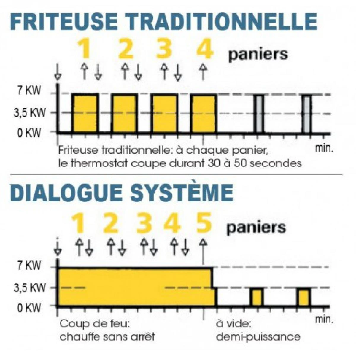 Friteuse électrique de table encastrable avec robinet. Elle dispose d’une cuve de 7 litres et permet une production de 10 à 15 kg/heure. Une construction tout en acier inoxydable, avec cuve emboutie d’une pièce sans soudure et angle arrondie pour faciliter le nettoyage. Cette friteuse Valentine ne transmet pas de goût entre les différentes préparations. Alimentation en 380V. | de la friteuse électrique professionnelle 7L avec robinet TF7T de Valentine La friteuse électrique professionnelle TF7T ou TF7 Turbo est fabriquée par Valentine et fait partie de la série TF. Valentine est une entreprise basée en Suisse et spécialisée dans la fabrication de friteuse électrique professionnelle à haut rendement depuis plus de 60 ans. La très haute qualité des friteuses électriques vaut à Valentine un savoir-faire mondialement reconnu. La série de friteuse électrique TF se compose en trois parties, pour toujours plus de sécurité et d’entretien simple. Ces trois parties sont, le boîtier de commande, la cuve et le châssis. la cuve et le châssis de la friteuse électrique sont nettoyables au lave vaisselle. Les friteuses de table TF élaborées par Valentine, répondent aux attentes les plus exigeantes, avec une finition inégalable. Cette friteuse électrique de table Valentine TF7 Turbo a une cuve de 7 litres et permet de produire 10 à 15 kg/heure. Elle peut-être encastrable sans supplément de prix (à préciser lors de la command
