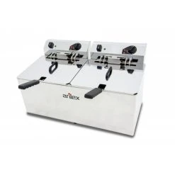 Arilex Friteuse Electrique Double Evolution | Cube intĂ©rieur en acier inoxydable sans angle et avec les marques de MAX-MIN du niveau d’huile.RĂ©sistance blindĂ©e en acier inoxydable.Thermostat de sĂ©curitĂ© de grande qualitĂ©, rĂ©glĂ© Ă 240°C avec rĂ©armement manuel.Système de fixation du panier qui facilite la vidange de l’huile du panneau de commande.Modèles G Ă©quipĂ©s d’une vidange d’huile au fond du seau qui permet une vidange complète et un nettoyage facile. Egalement fourni avec un filtre anti-rĂ©sidu qui empĂŞche le drain de se boucher.”Zone froide” oĂą se dĂ©posent les restes des aliments frits en dessous de la rĂ©sistance. Ainsi, ils ne se cuisent pas de nouveau et ne se mĂ©langent pas aux fritures suivantes, afin d’Ă©viter le mĂ©lange de saveurs.Paniers robustes en acier inoxydable avec poignĂ©e en bakĂ©lite “Ă froid”. Dimensions (LxPxH) mm: 290x245x110.Panneau de commande Ă©lectrique entièrement Ă©tanche et amovible pour un meilleur nettoyage.Thermostat de travail de grande qualitĂ© rĂ©glable jusqu’Ă 190°C/20A.Micro-interrupteur de sĂ©curitĂ© qui Ă©vite que la rĂ©sistance continue de fonctionner lorsque la tĂŞte est extraite.Friteuses Ă©quipĂ©es de contactor.EVO1212GTR : CapacitĂ© (L) : 12 + 12CapacitĂ© huile (L) : 10 + 10Robinet : OuiPuissance (KW) : 7,5 + 7,5Tension (V) : 380Dimensions (LxPxH) mm : 695x495x325Poids : 30 KgEVO1212TR : CapacitĂ© (L) : 12 + 12CapacitĂ© huile (L) : 10 + 10Robinet : NonPuissance (KW) : 7,5 + 7,5Tension (V) : 380Dimensions (LxPxH) mm : 695x495x325Poids : 28 Kg