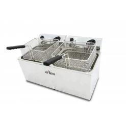 Arilex Friteuse Electrique Double Evolution | Cube intĂ©rieur en acier inoxydable sans angle et avec les marques de MAX-MIN du niveau d’huile.RĂ©sistance blindĂ©e en acier inoxydable.Thermostat de sĂ©curitĂ© de grande qualitĂ©, rĂ©glĂ© Ă 240°C avec rĂ©armement manuel.Système de fixation du panier qui facilite la vidange de l’huile du panneau de commande.Modèles G Ă©quipĂ©s d’une vidange d’huile au fond du seau qui permet une vidange complète et un nettoyage facile. Egalement fourni avec un filtre anti-rĂ©sidu qui empĂŞche le drain de se boucher.”Zone froide” oĂą se dĂ©posent les restes des aliments frits en dessous de la rĂ©sistance. Ainsi, ils ne se cuisent pas de nouveau et ne se mĂ©langent pas aux fritures suivantes, afin d’Ă©viter le mĂ©lange de saveurs.Paniers robustes en acier inoxydable avec poignĂ©e en bakĂ©lite “Ă froid”. Dimensions (LxPxH) mm: 290x245x110.Panneau de commande Ă©lectrique entièrement Ă©tanche et amovible pour un meilleur nettoyage.Thermostat de travail de grande qualitĂ© rĂ©glable jusqu’Ă 190°C/20A.Micro-interrupteur de sĂ©curitĂ© qui Ă©vite que la rĂ©sistance continue de fonctionner lorsque la tĂŞte est extraite.Friteuses Ă©quipĂ©es de contactor.EVO1212GTR : CapacitĂ© (L) : 12 + 12CapacitĂ© huile (L) : 10 + 10Robinet : OuiPuissance (KW) : 7,5 + 7,5Tension (V) : 380Dimensions (LxPxH) mm : 695x495x325Poids : 30 KgEVO1212TR : CapacitĂ© (L) : 12 + 12CapacitĂ© huile (L) : 10 + 10Robinet : NonPuissance (KW) : 7,5 + 7,5Tension (V) : 380Dimensions (LxPxH) mm : 695x495x325Poids : 28 Kg