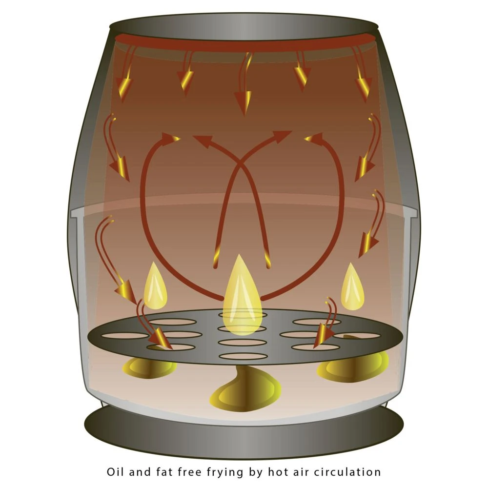 Friteuse sans huile. Peu de fumĂ©e et d’odeur. Economise du temps et de l’Ă©nergie. PoignĂ©e froide au toucher. Container amovible. Thermostat ajustable de 80°C Ă 200°C. Timer de 30 min avec signal sonore de fin de cuisson. Lamp de contrĂ´le. Protection contre la surchauffe. Puissance : 900 W CapacitĂ© : 1,5 l Dimensions : 22,5 x 30,5 x 27 cm Alimentation : 220 – 240 V, 50/60 Hz