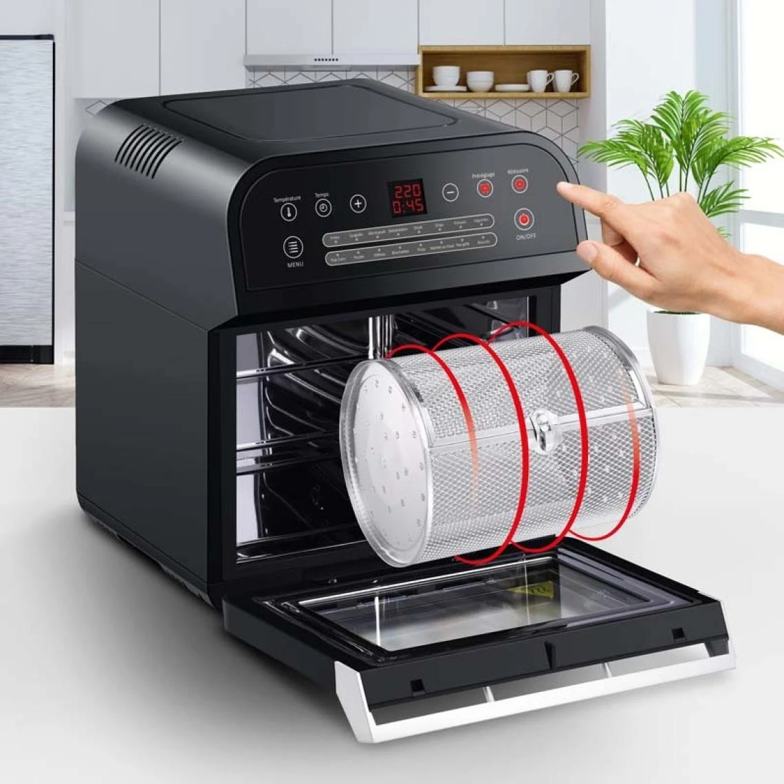 Avec ses 13 programmes et ses 4 fonctions ce four friteuse vous permettra de cuire Ă l’air chaud, de dĂ©congeler, de dĂ©shydrater et de maintenir au chaud.