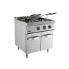 Construction inox et cuve emboutie en inox 304 AISI d’une seule pièce sans soudure pour un nettoyage plus facile et une meilleure hygiène Cuve d’une capacité de 22 litres emboutie avec zone froide. La cuve et la partie supérieure de l’appareil forment un dessus mono bloc grâce à un assemblage robotisé sans soudure La conception de l’appareil et son châssis entièrement en acier inoxydable lui confère une excellente robustesse gage d’une importante durée de vie Régulation thermostatique pour une température de fonctionnement maximale de 190°C Thermostat de sécurité à réarmement manuel Les friteuses gaz sont équipées de brûleurs en acier inoxydable assurant une combustion optimale Allumage Piezo pour la sécurité et la simplicité d’utilisation Le repositionnement des résistances sur les modèles électrique permet une montée et un contrôle de la température plus rapide et plus efficace car l’ensemble du bloc de résistances est immergé dans l’huile. Volume (litres) : 22 – Température : 110 – 190 °C – Puissance (kW) : 22 – Dim. (mm) LxPxH : 400 x 900 x 850 Volume (litres) : 2 x 22 – Température : 110 – 190 °C – Puissance (kW) : 44 – Dim. (mm) LxPxH : 800 x 900 x 850 | Le système de rotation de ce bloc de résistances permet d’accéder sans contraintes au fond de la cuve et facilite l’entretien et le nettoyage de l’appareil Résistances blindées avec puissance et intensité de chauffe spécialement étudiées pour conserver une qualité d’huile optimale tout au long de la cuisson Deux paniers par cuve de 22 litres Grand panier en option Robinet de vidange avec valve de sécurité situé sous la cuve pour faciliter la récupération de l’huile usagée Temps de cuisson 3 ½ minutes