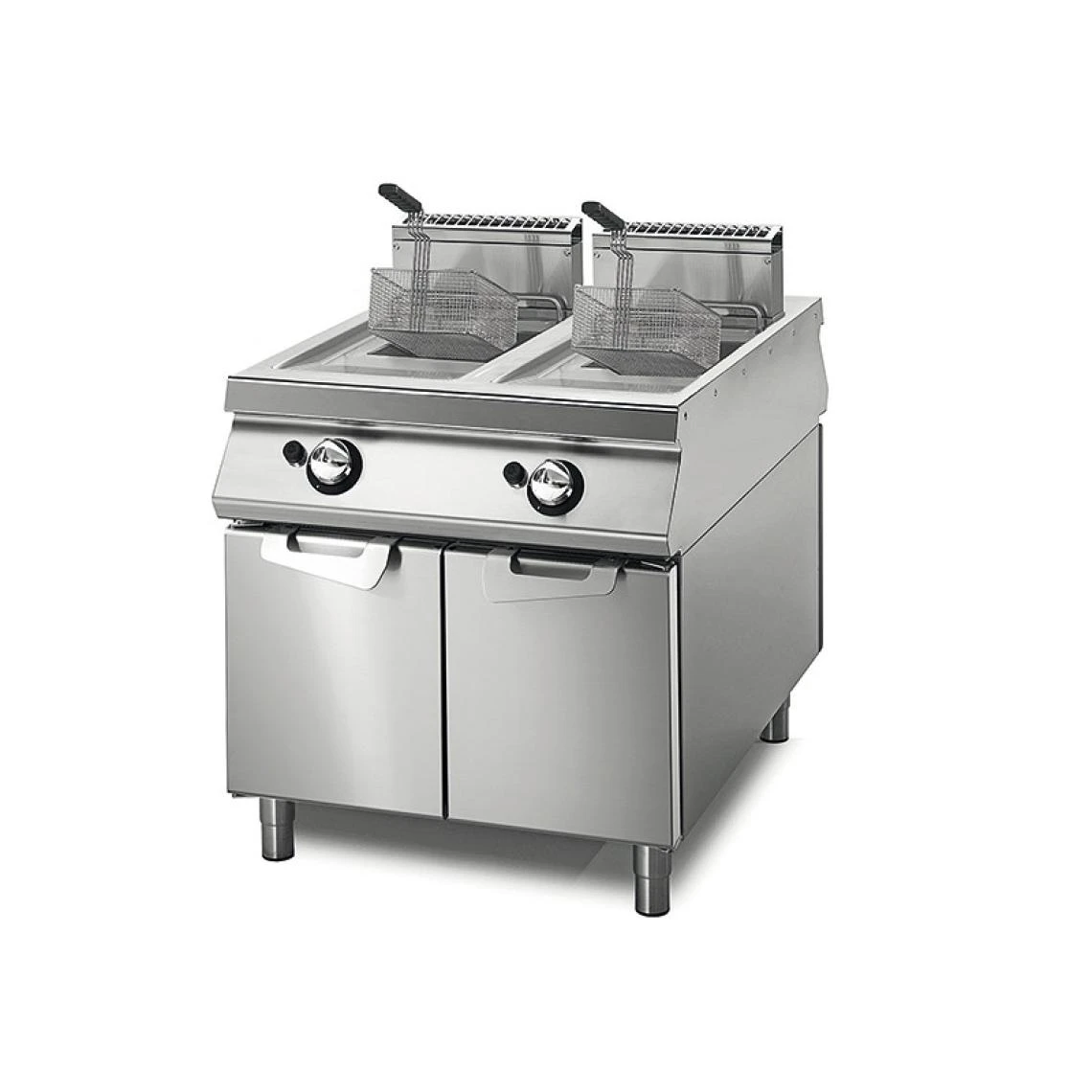 Friteuse gaz 22+22 litres sur coffre avec portes – Virtus | Friteuse gaz 22+22 litres sur coffre avec portes de la marque Virtus, fabriquĂ© en acier inoxydable de haute qualitĂ©.Friteuse Ă gaz avec plan de travail pressĂ© en acier inoxydable AISI 304, Ă©paisseur 20/10. EquipĂ© d’une vanne de vidange.Tuyaux de chauffage au gaz Ă l’intĂ©rieur du puits.Radiateurs avec brĂ»leur pilote et allumage piĂ©zo.Alimentation en gaz par vanne thermostatique avec thermocouple.TempĂ©rature d’huile contrĂ´lĂ©e par thermostat mĂ©canique avec rĂ©glage jusqu’Ă 190 ° C.EquipĂ© d’un thermostat de sĂ©curitĂ©.Taille (mm): L800 P1100 H870Poids (Kg): 96.00Puissance: gazPuissance (Kw): 40,000TempĂ©rature: max. up to 190°CCapacitĂ©: 22+22 litresRaccordement au gaz 1/2″