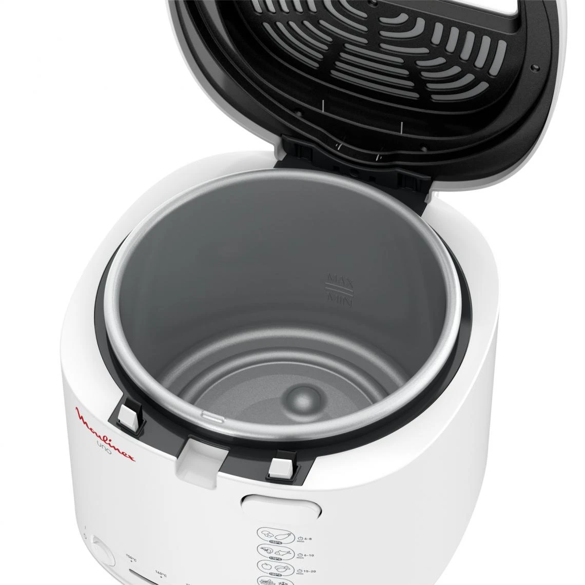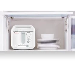 Moulinex AF203. Type de produit: Friteuse, CapacitĂ© de la friteuse: 0,8 kg, CapacitĂ© en huile: 1,8 L. Type de construction: Unique, Couleur du produit: Blanc, Type de commande: Boutons, Foie. Puissance: 1600 W, Puissance d’alimentation max.: 1600 W. Largeur: 300 mm, Profondeur: 300 mm, Hauteur: 250 mm. Consommation Ă©lectrique typique: 1600 W