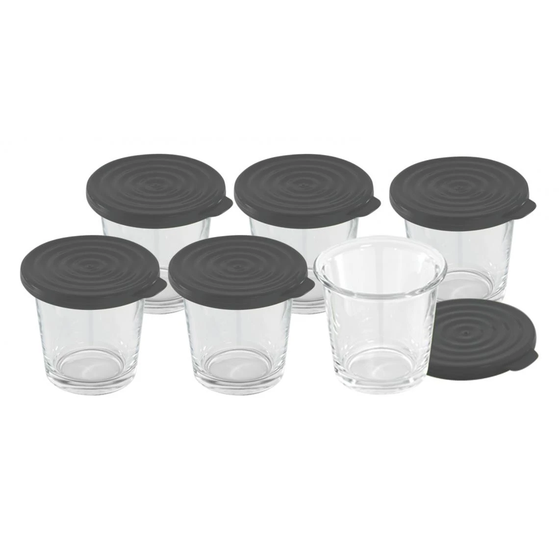 6 verrines en verre avec leur couvercle en silicone, résistantes et pratiques, elles vous permettent de réaliser facilement vos recettes de verrines aussi bien salées que