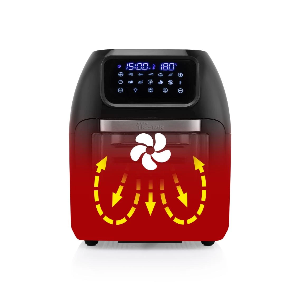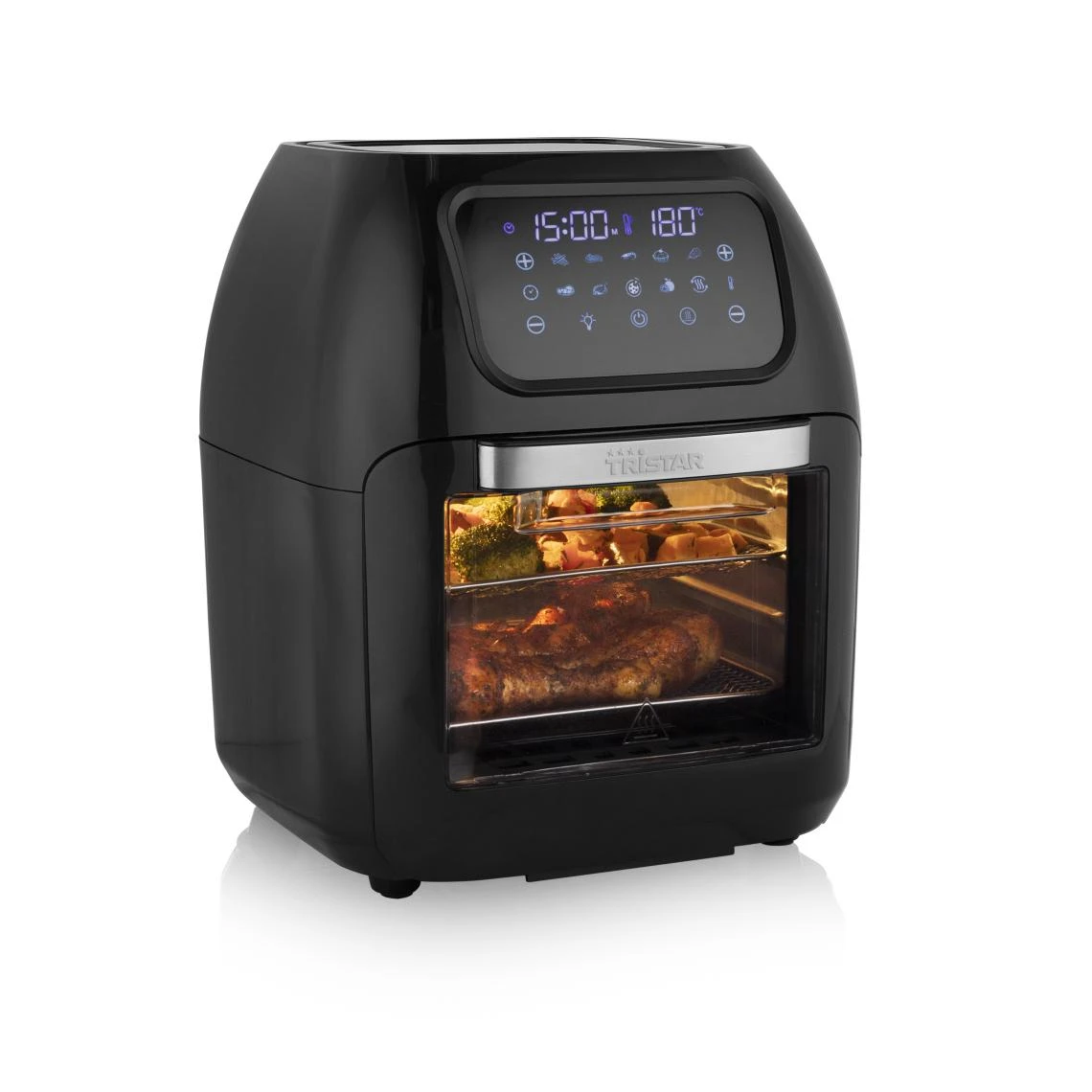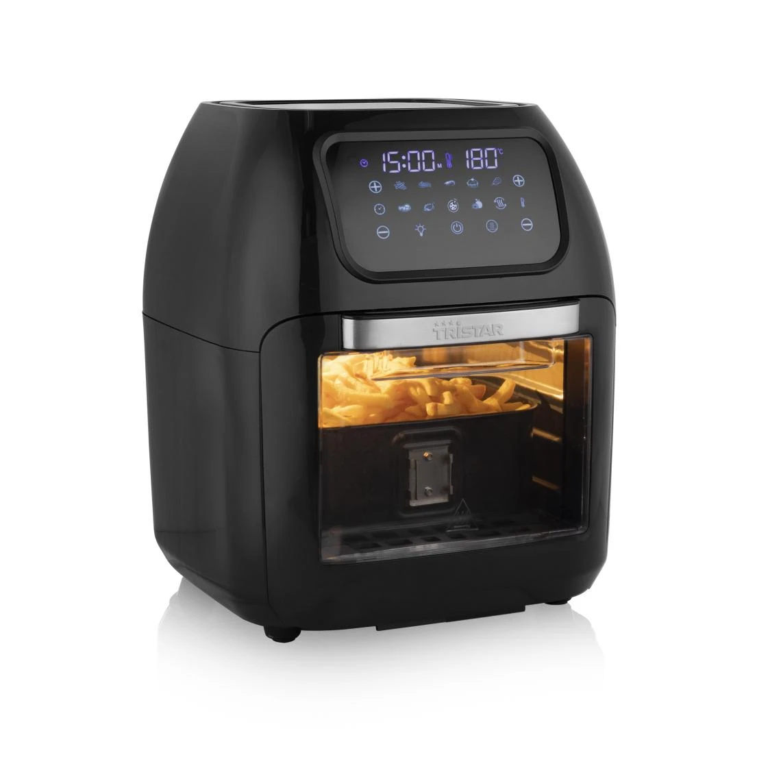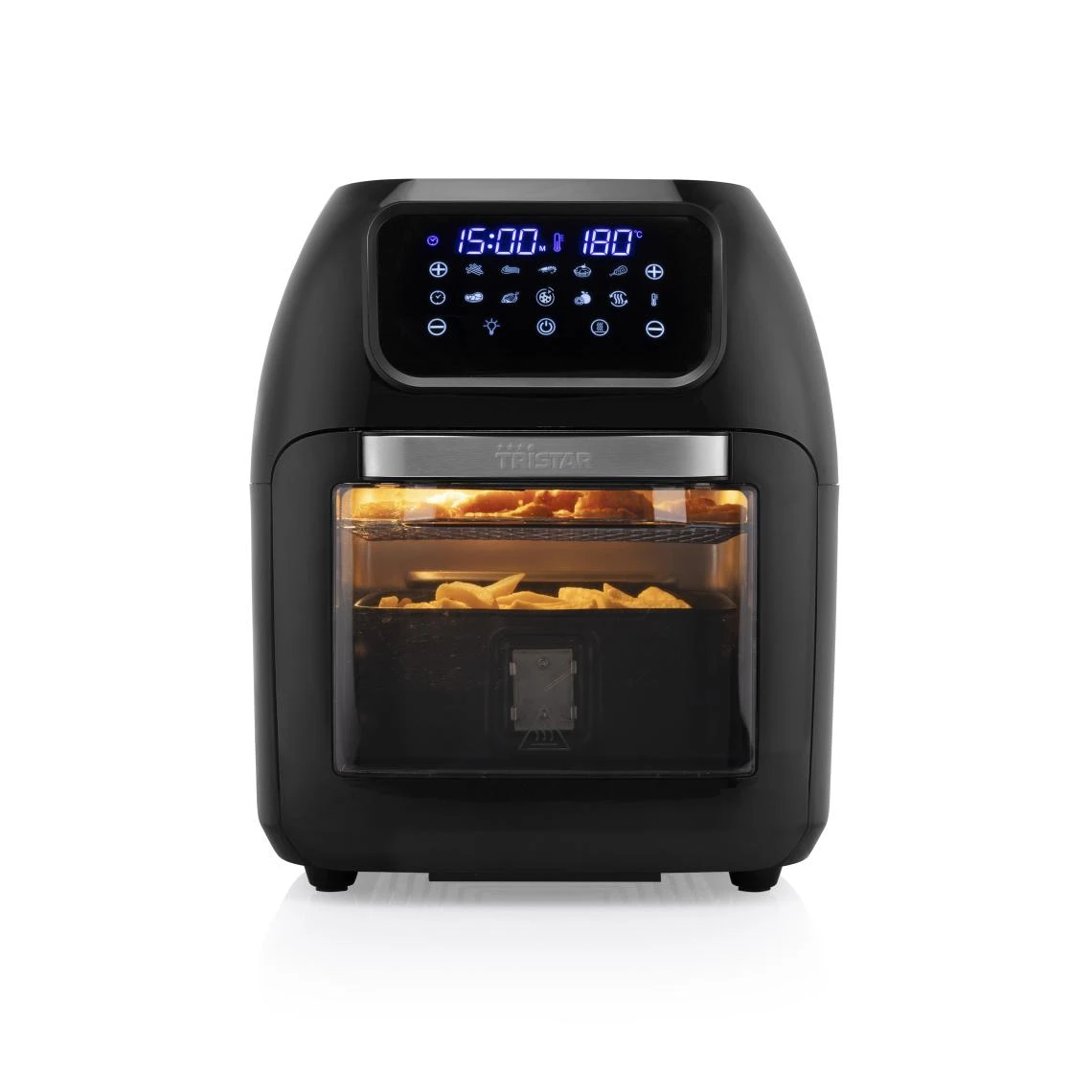 Tristar FR-6964 Four-friteuse Crispy multifonction. Type de produit: Friteuse d’air chaud, CapacitĂ©: 10 L, TempĂ©rature (min): 80 °C. Type de construction: Unique, Couleur du produit: Noir, Type de commande: Tactile. Type d’Ă©cran: LCD. Puissance: 1800 W, Tension d’entrĂ©e AC: 220 – 240 V, FrĂ©quence d’entrĂ©e AC: 50 / 60 Hz. Poids: 6,07 kg, Largeur du colis: 360 mm, Profondeur du colis: 360 mm