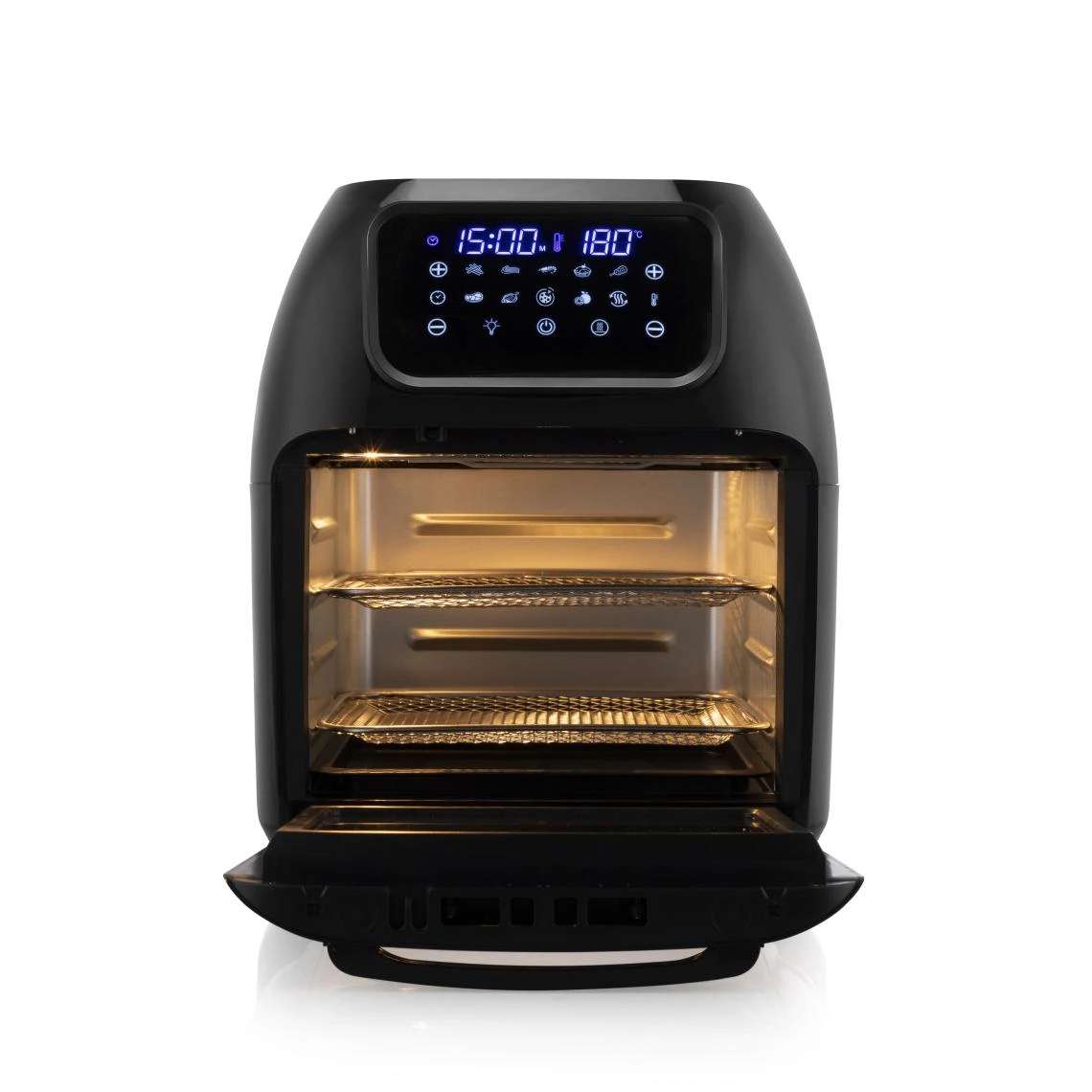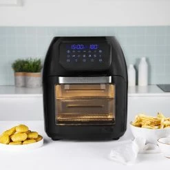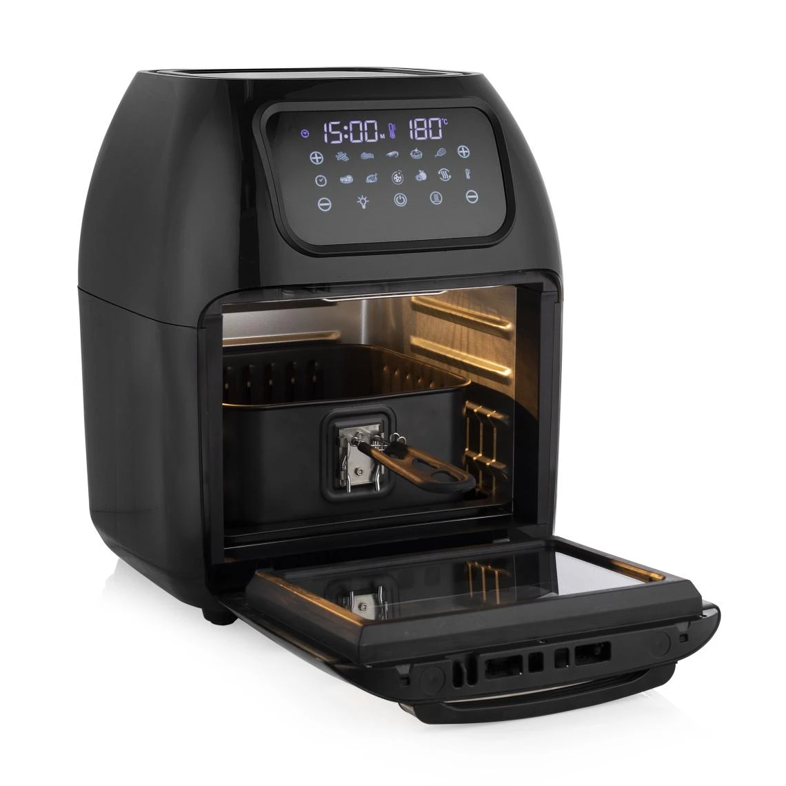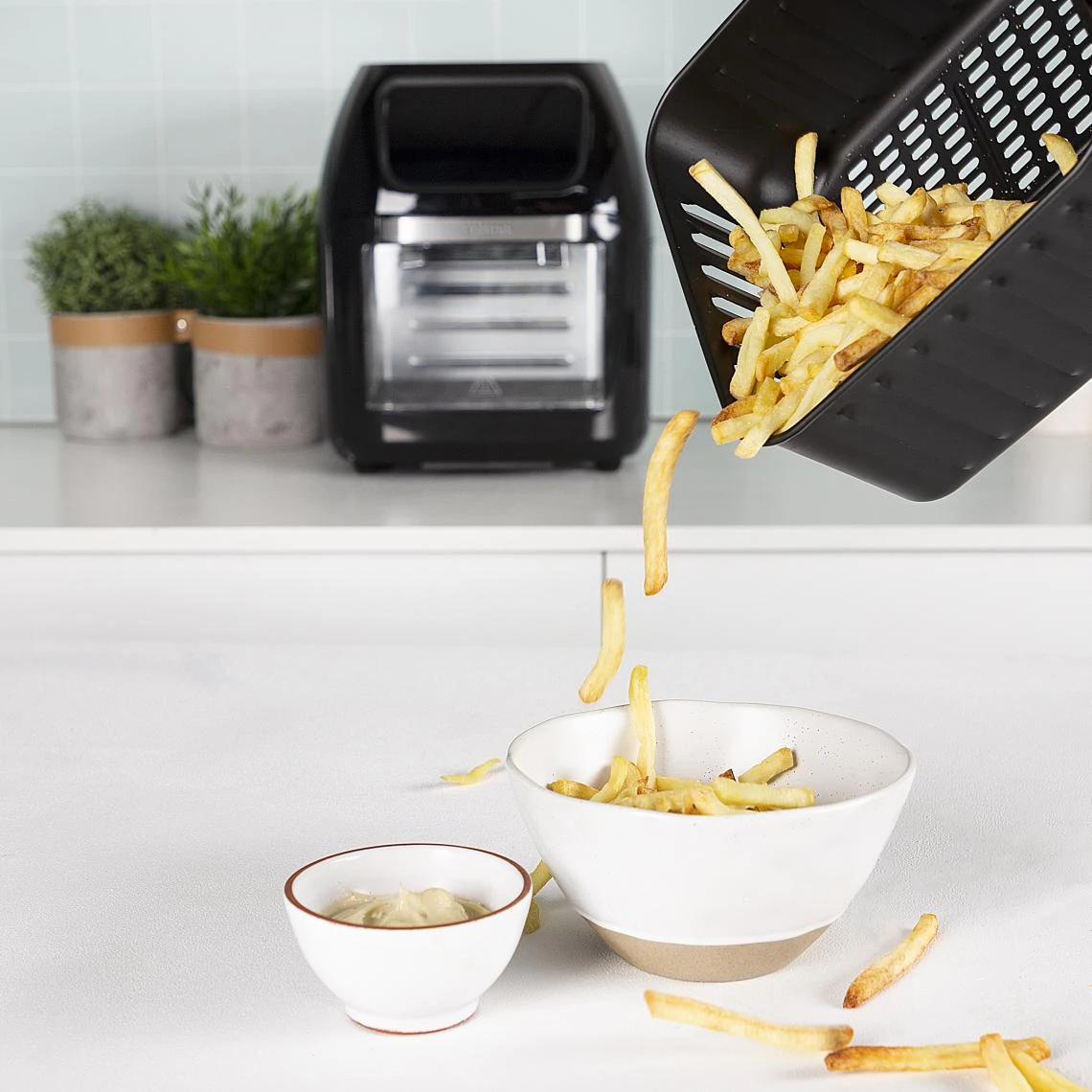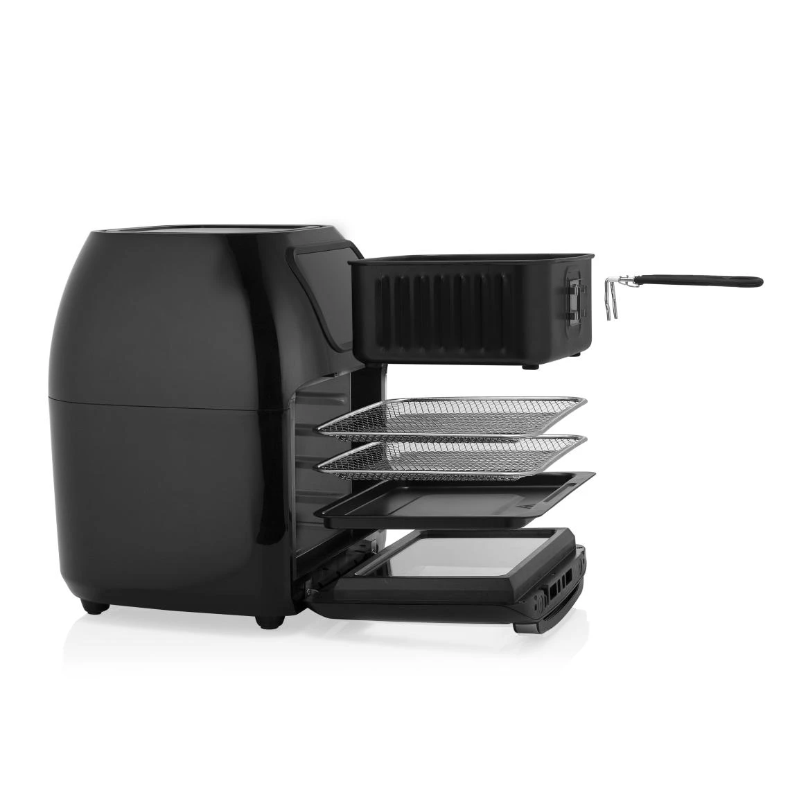 Tristar FR-6964 Four-friteuse Crispy multifonction. Type de produit: Friteuse d’air chaud, CapacitĂ©: 10 L, TempĂ©rature (min): 80 °C. Type de construction: Unique, Couleur du produit: Noir, Type de commande: Tactile. Type d’Ă©cran: LCD. Puissance: 1800 W, Tension d’entrĂ©e AC: 220 – 240 V, FrĂ©quence d’entrĂ©e AC: 50 / 60 Hz. Poids: 6,07 kg, Largeur du colis: 360 mm, Profondeur du colis: 360 mm