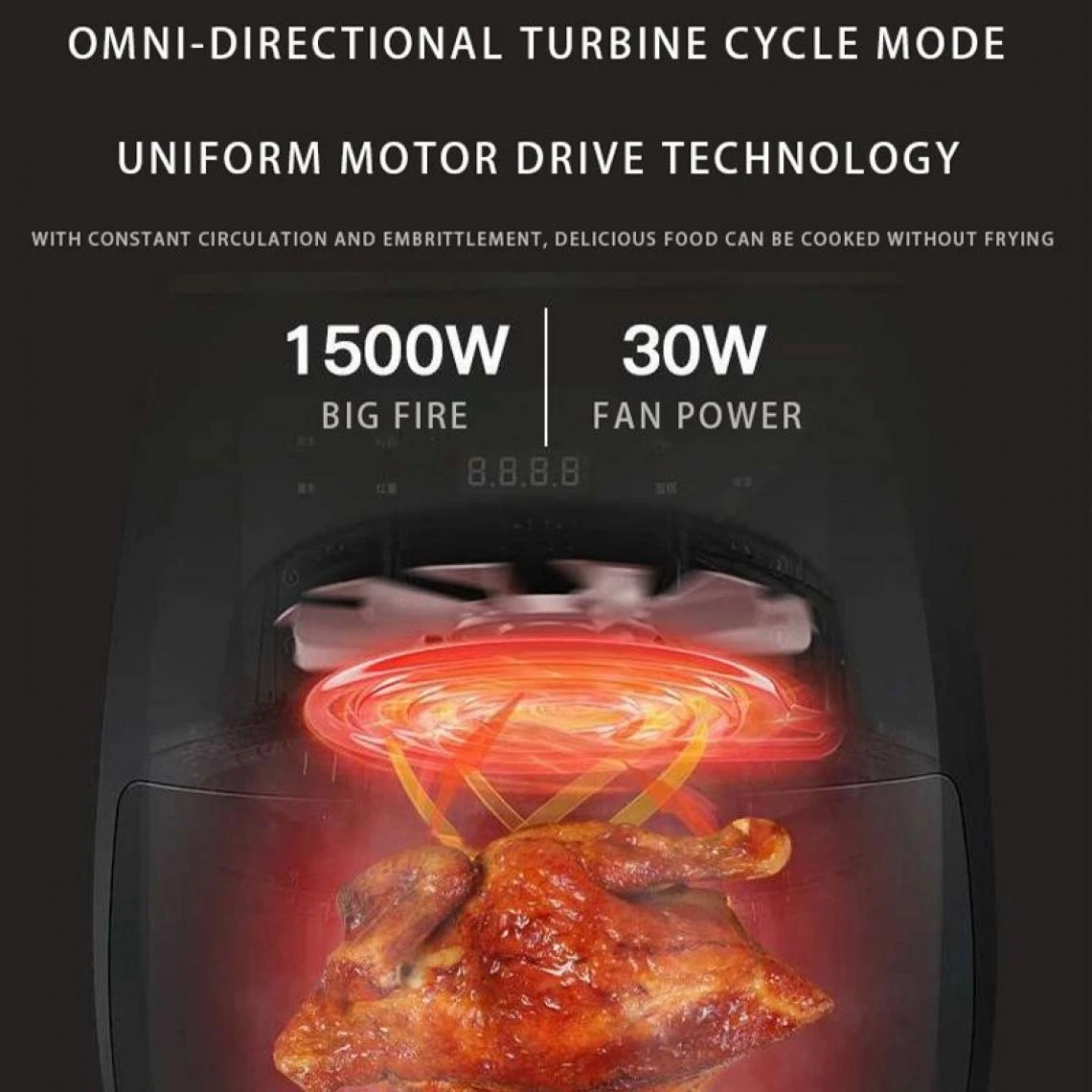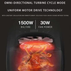 – Fibrissement de l’air: Friteuse d’air avec système de circulation de l’air chaud Rapids, permettez à votre nourriture de cuisson dans toutes les directions et chauffée uniformément avec peu d’huile à aucune huile ajoutée. Moins de graisse, plus sainement.