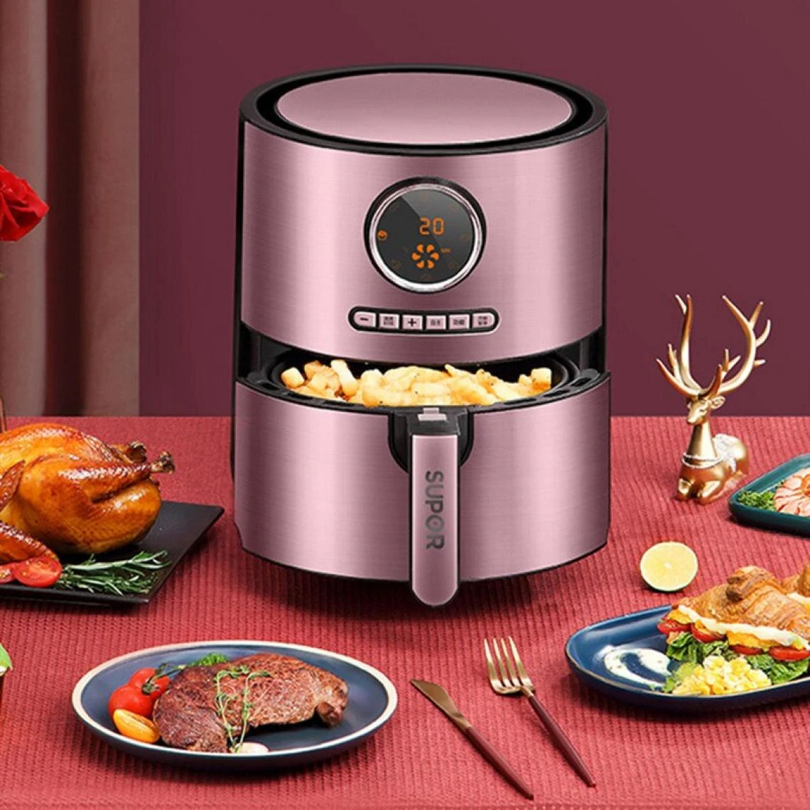Points forts Universal Poêle à friteuse à air domestique poêle électrique multifonction machine à frites(Or rose)